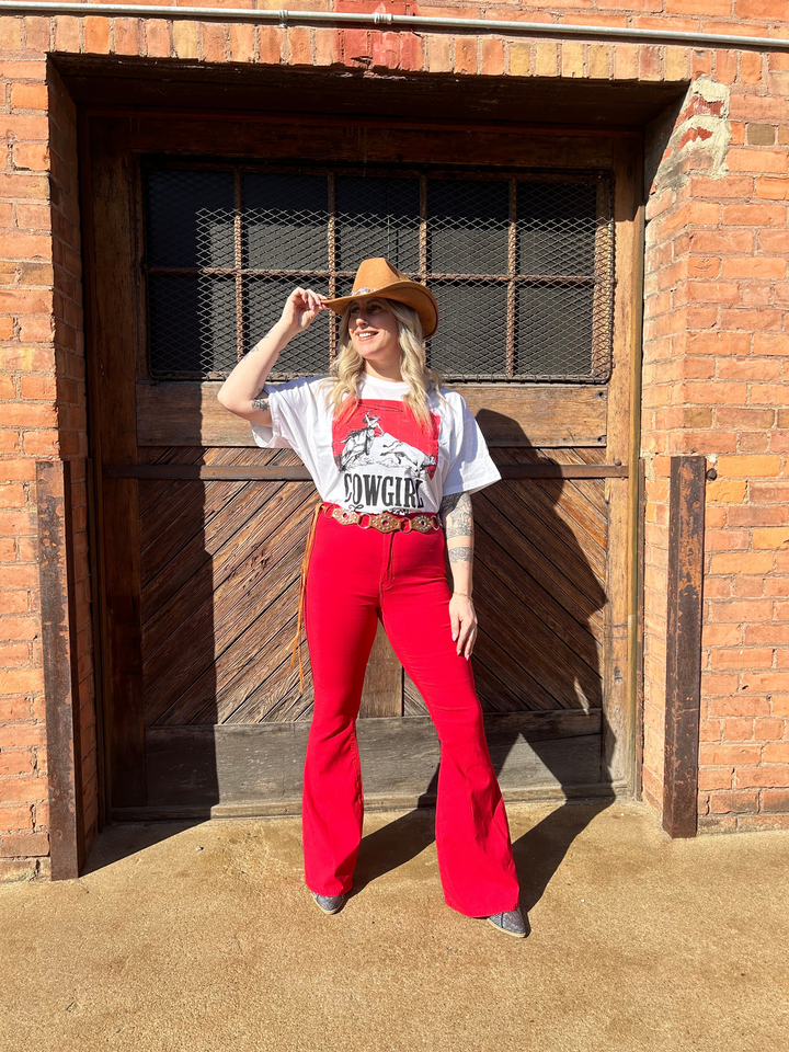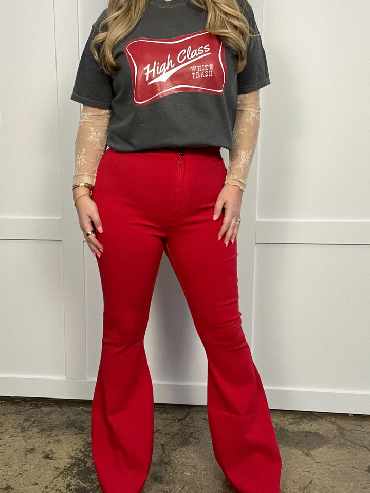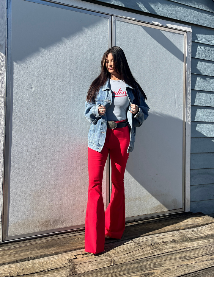 Fiona High Waisted Bell Bottom Flare Jeans - Red