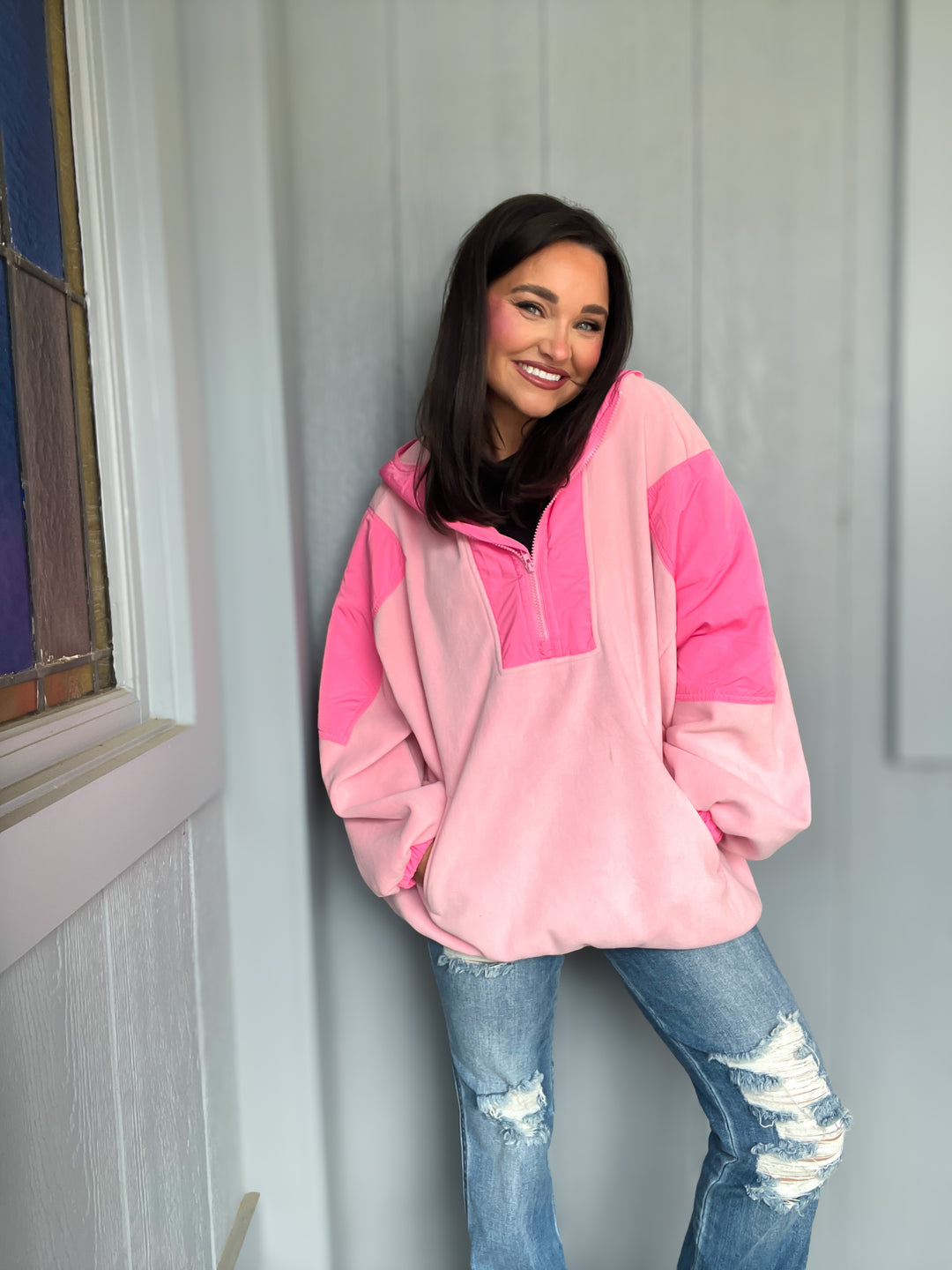 PREORDER: Retro Vibe Color Block Round Neck Long Sleeve Sweatshirt