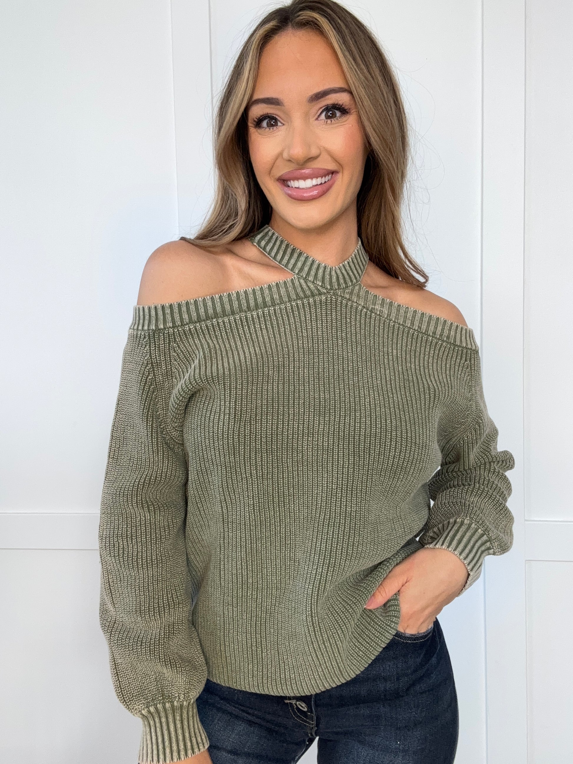 The Mineral Washed Cold Shoulder Sweater is a trendy and unique piece for your fall and winter wardrobe. Featuring a stylish mineral washed finish, this sweater offers a cool and edgy look. The cold shoulder design adds a touch of sass and sophistication, perfect for making a statement. Pair this sweater with jeans and boots for a chic and casual outfit, or dress it up with a skirt and heels for a more elevated style. Stay cozy and on-trend with this fashionable cold shoulder sweater.