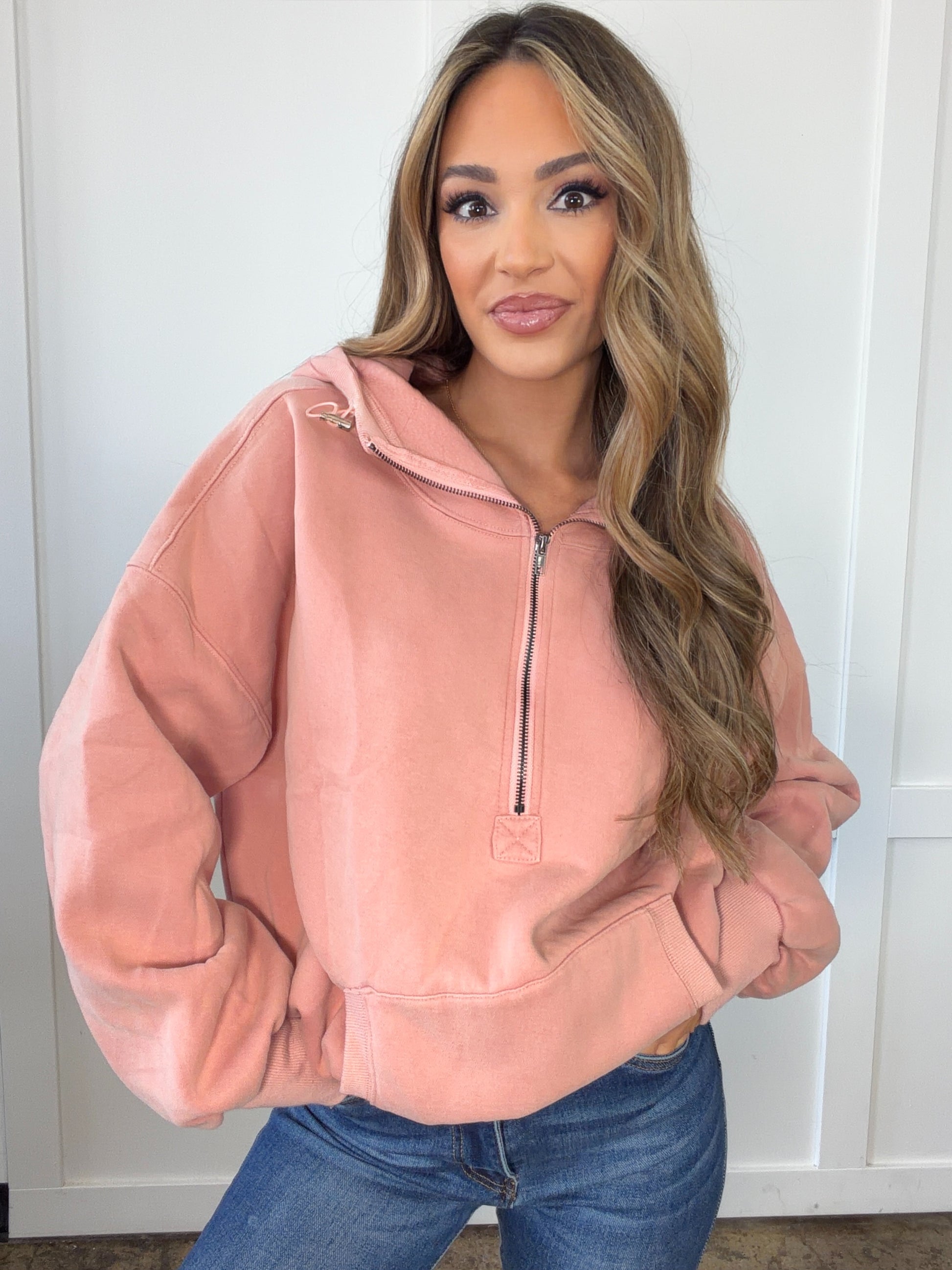 Stay cozy and stylish in this stitch-detailed elastic hem half-zip fleece hoodie. The stitch details add a touch of texture and interest to the hoodie. The elastic hem provides a comfortable and secure fit. Perfect for layering over your favorite tops for added warmth and style. Elevate your casual look with this trendy and practical hoodie.