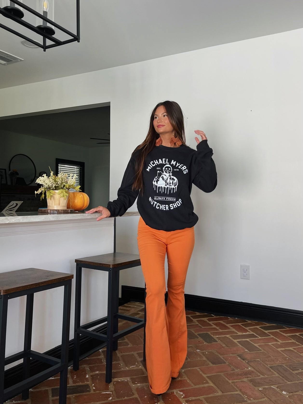 - Michael Myers butcher shop crewneck, sweatshirt, and tee options