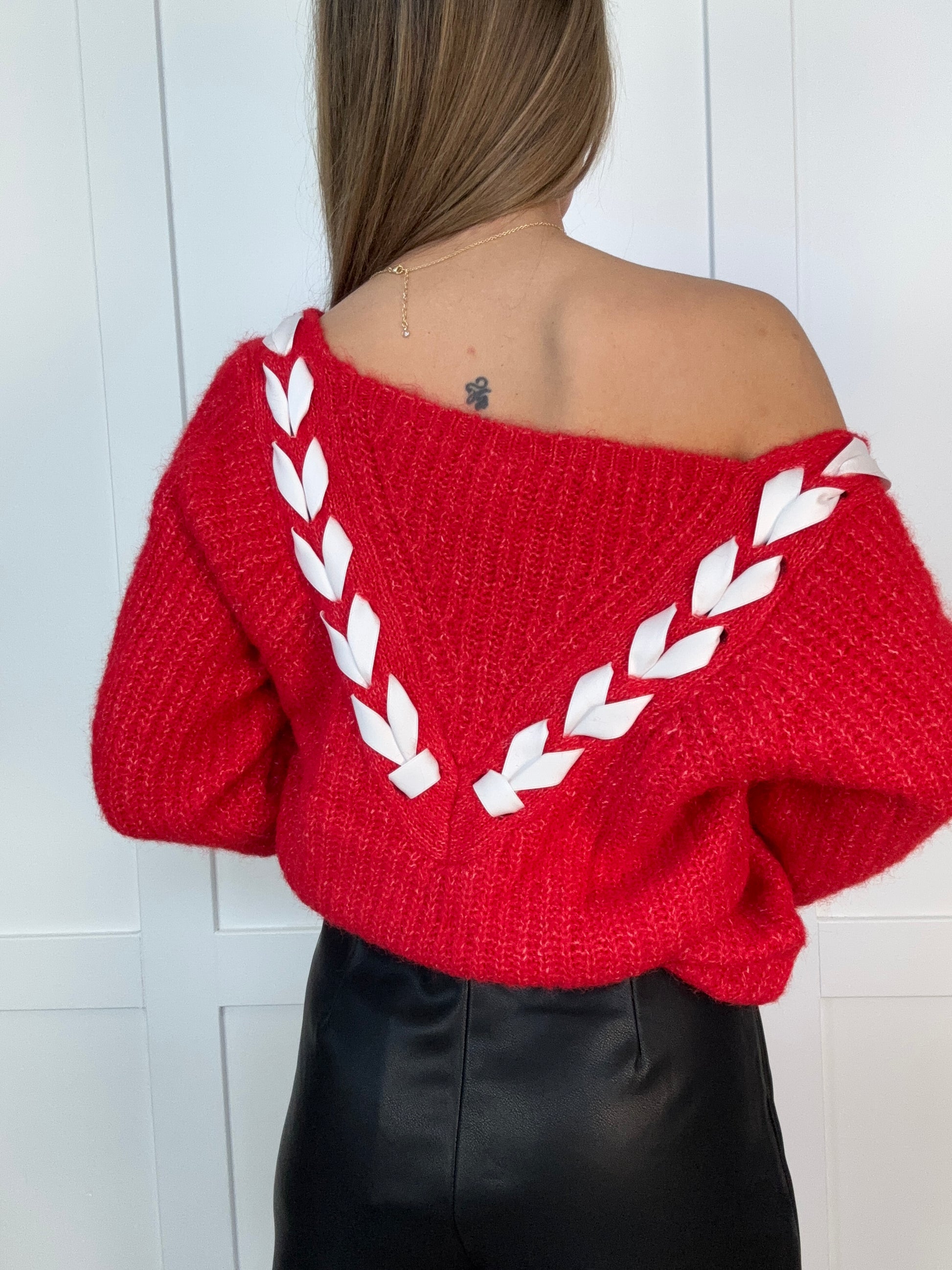 Lola Satin Braided Ribbon Tie V Neck Sweater