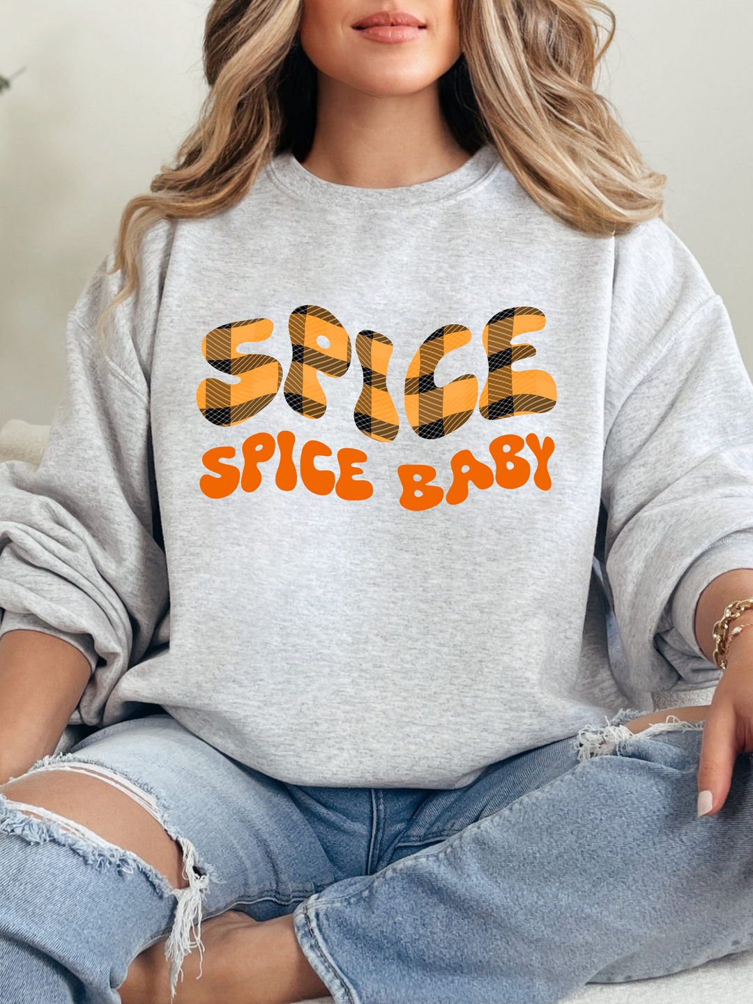 Get ready to rock the fall season with our Spice Spice Baby graphic crewneck/cropped hoodie! This iconic crewneck/hoodie features plaid and orange lettering, along with a colorful graphic. Made with soft, comfortable material, it's perfect for your next trip to the pumpkin patch. Be a bad beauty and spice up your wardrobe with this playful crewneck.