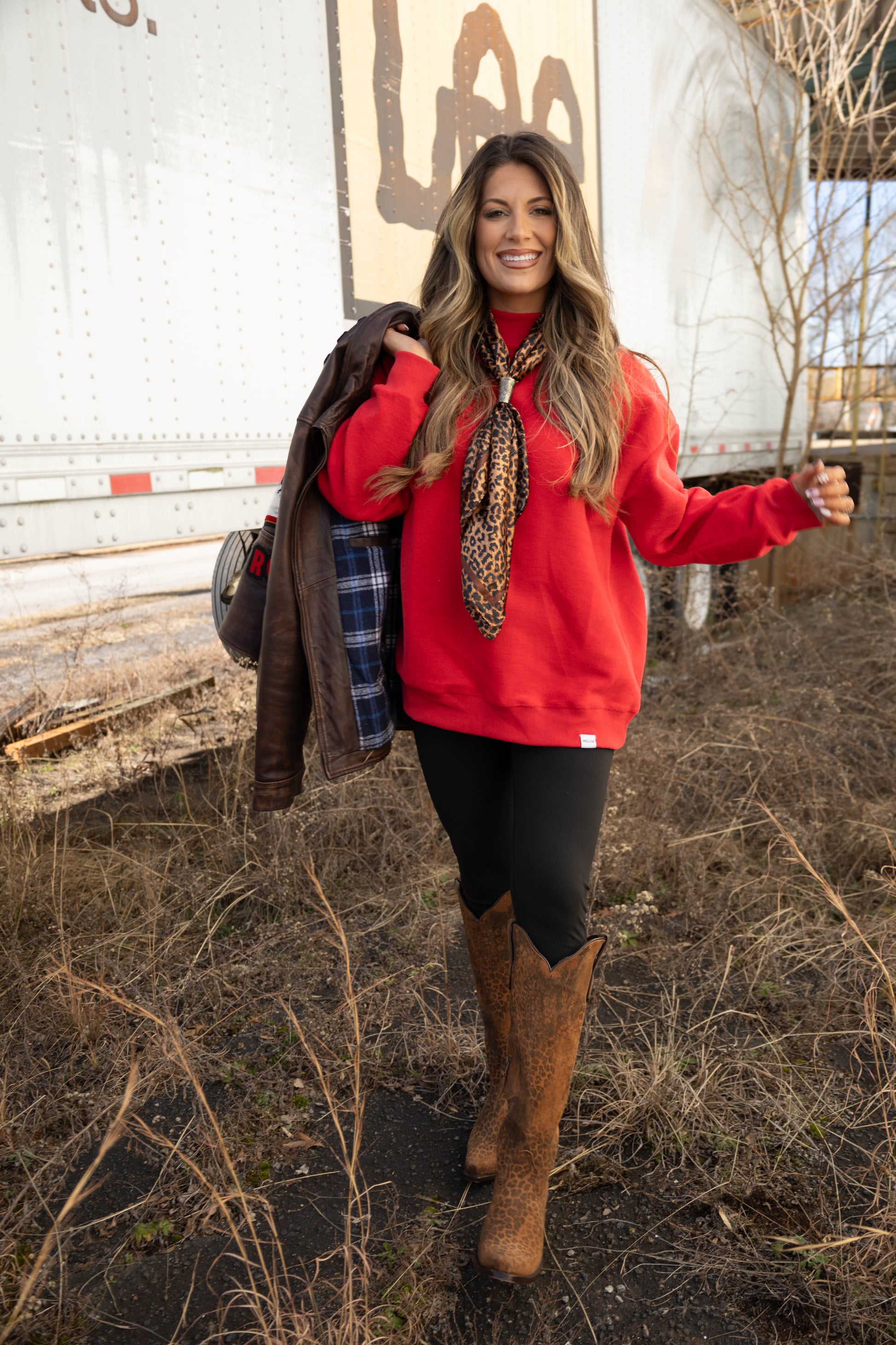 The Tilly Red Mock Neck Crew is your new go-to layer for effortless, everyday style. Designed with a relaxed, oversized fit, this long-sleeve crewneck features a chic mock neck that instantly elevates any outfit while keeping things comfortable and cozy.